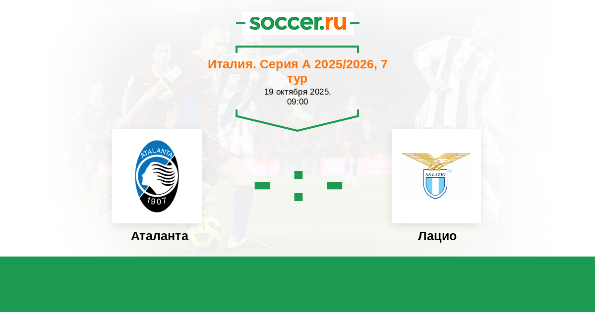 Италия. Серия А 19.10.2019 Лацио Логотип футбольный клуб Лацио (Рим) 3:3 Логотип футбольный клуб Аталанта (Бергамо) Аталанта