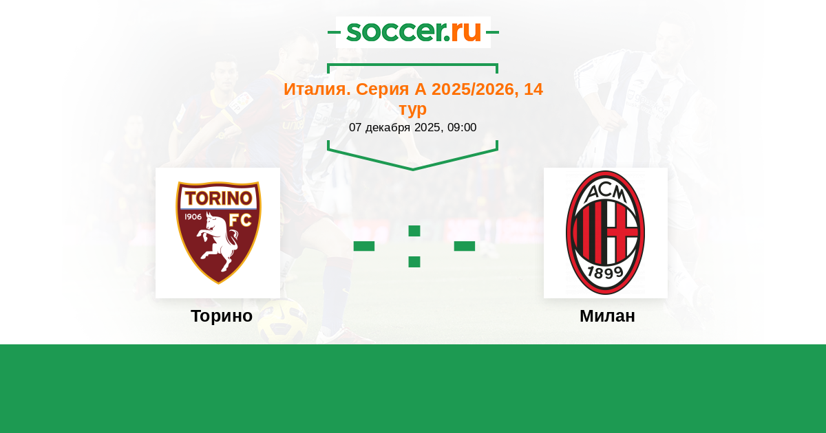 Италия. Серия А 17.08.2024 Милан Логотип футбольный клуб Милан 2:2 Логотип футбольный клуб Торино (Турин) Торино