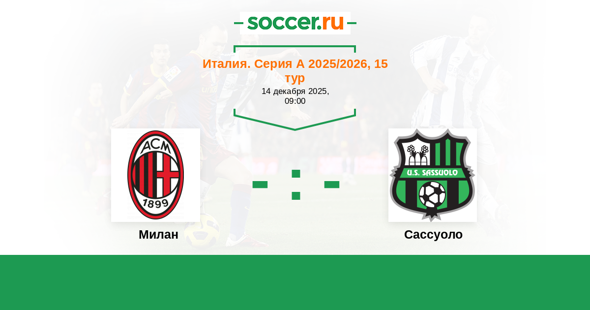 Италия. Серия А 15.12.2019 Милан Логотип футбольный клуб Милан 0:0 Логотип футбольный клуб Сассуоло Сассуоло