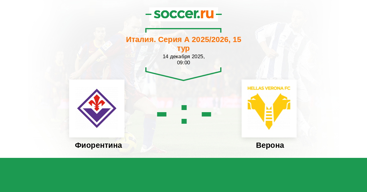 Италия. Серия А 19.12.2020 Фиорентина Логотип футбольный клуб Фиорентина (Флоренция) 1:1 Логотип футбольный клуб Верона Верона