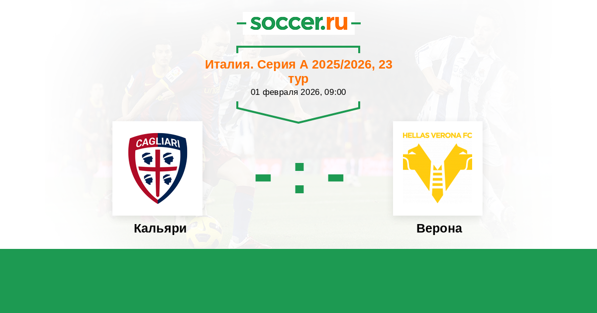Италия. Серия А 30.11.2021 Верона Логотип футбольный клуб Верона 0:0 Логотип футбольный клуб Кальяри Кальяри