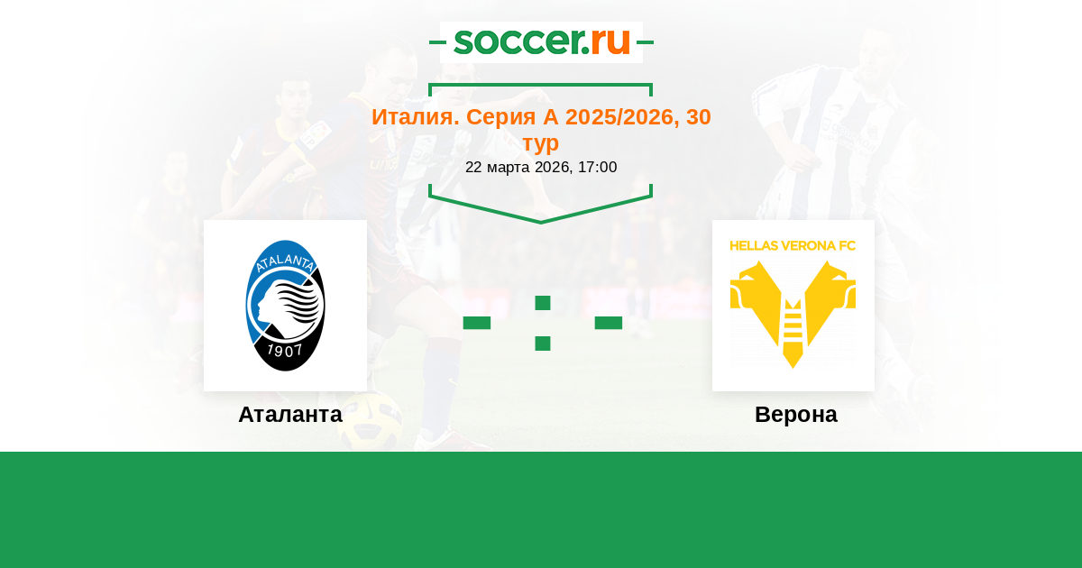 Италия. Серия А 21.03.2021 Верона Логотип футбольный клуб Верона 0:2 Логотип футбольный клуб Аталанта (Бергамо) Аталанта