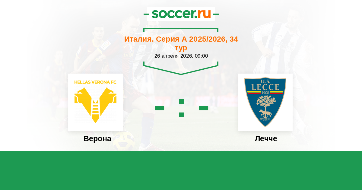 Италия. Серия А 08.11.2025 Лечче Логотип футбольный клуб Лечче 0:0 Логотип футбольный клуб Верона Верона