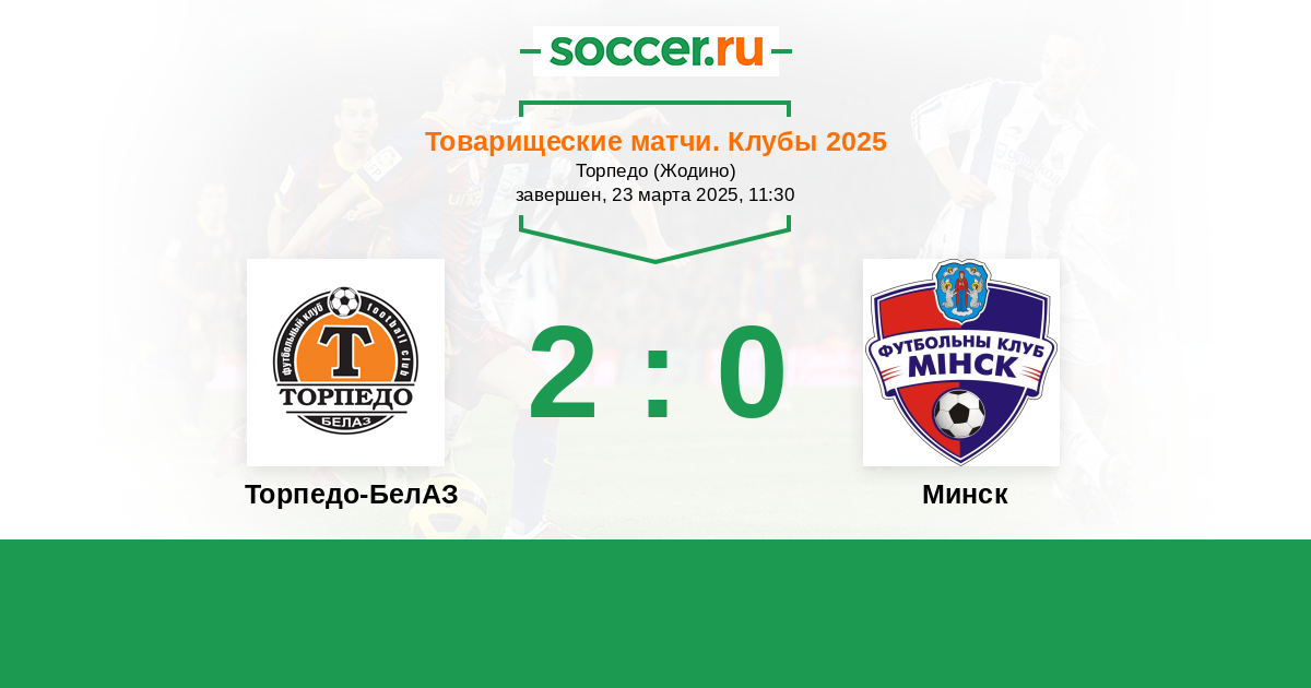 Товарищеские матчи. Клубы 27.01.2025 Торпедо-БелАЗ Логотип футбольный клуб Торпедо-БелАЗ (Жодино) 1:0 Логотип футбольный клуб Минск Минск