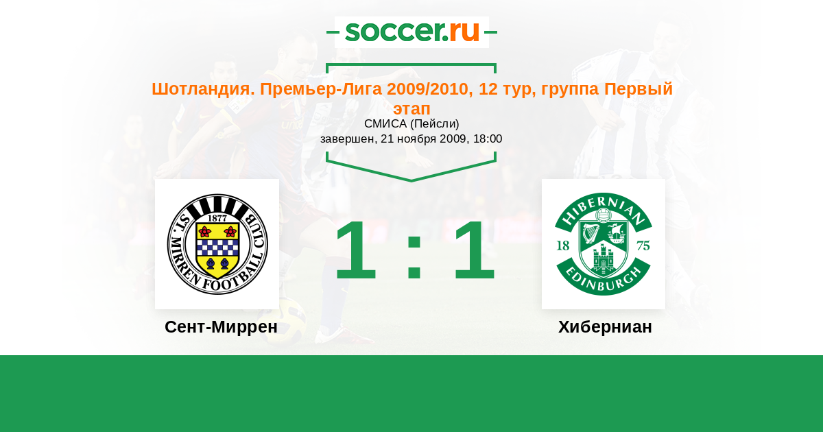 Шотландия. Премьер-Лига 13.04.2009 Сент-Миррен Логотип футбольный клуб Сент-Миррен (Пейсли) 1:1 Логотип футбольный клуб Хиберниан (Эдинбург) Хиберниан