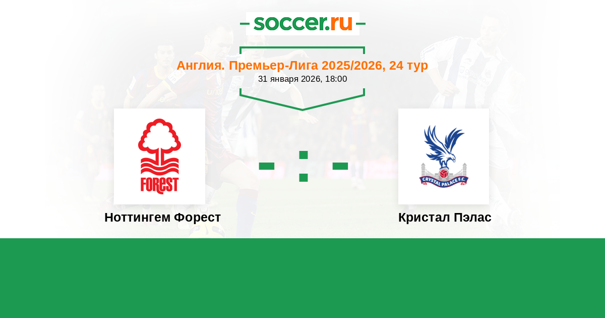 Англия. Премьер-Лига 21.10.2024 Ноттингем Форест Логотип футбольный клуб Ноттингем Форест 1:0 Логотип футбольный клуб Кристал Пэлас (Лондон) Кристал Пэлас