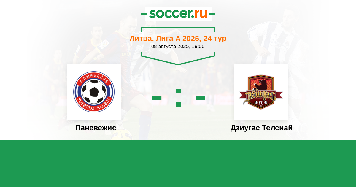 Литва. Лига А 21.08.2021 Дзиугас Телсиай Логотип футбольный клуб Дзиугас Телсиай (Тельшай) 2:2 Логотип футбольный клуб Паневежис Паневежис