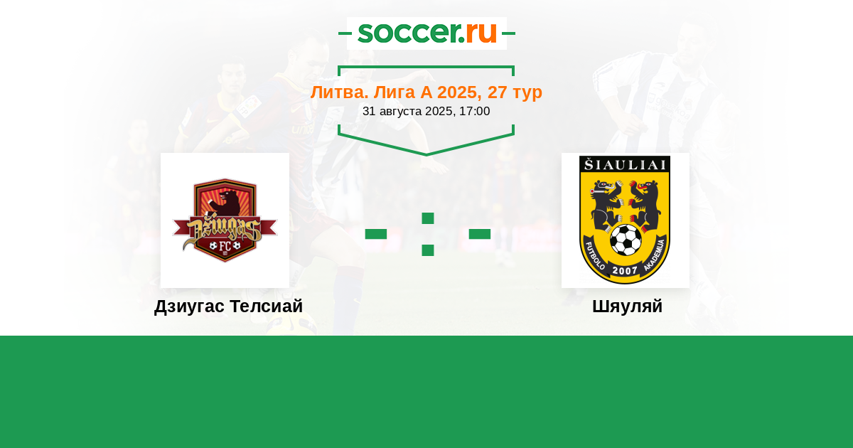 Литва. Лига А 29.06.2025 Шяуляй Логотип футбольный клуб Шяуляй 5:0 Логотип футбольный клуб Дзиугас Телсиай (Тельшай) Дзиугас Телсиай