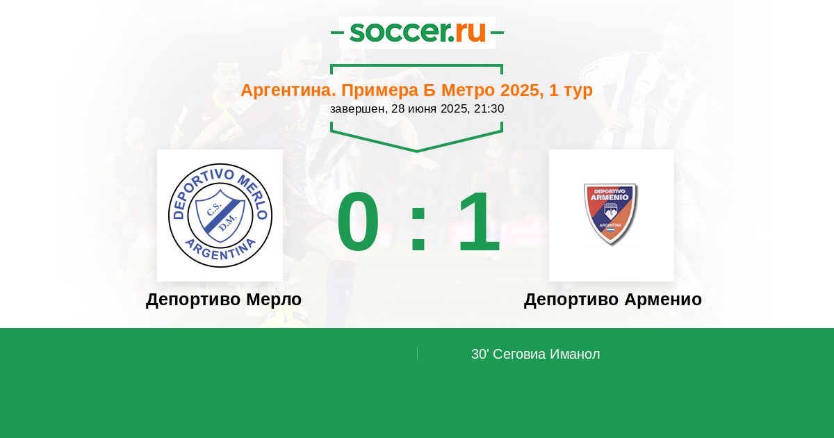 Аргентина. Примера Б Метро 09.07.2021 Депортиво Мерло Логотип футбольный клуб Депортиво Мерло 1:0 Логотип футбольный клуб Депортиво Арменио Депортиво Арменио