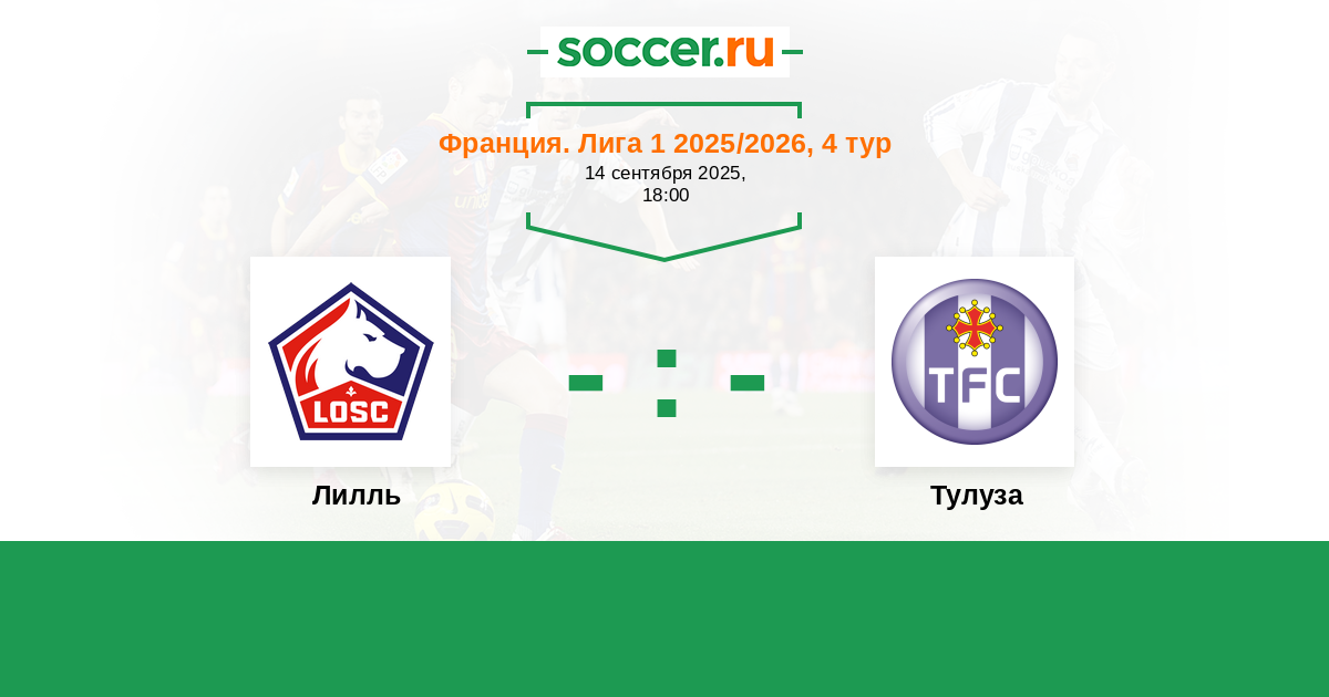 Франция. Лига 1 26.09.2010 Тулуза Логотип футбольный клуб Тулуза 1:1 Логотип футбольный клуб Лилль Лилль