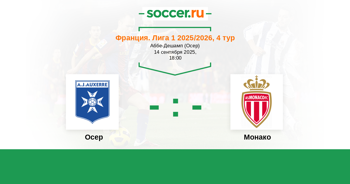 Франция. Лига 1 14.09.2024 Осер Логотип футбольный клуб Осер 0:3 Логотип футбольный клуб Монако Монако