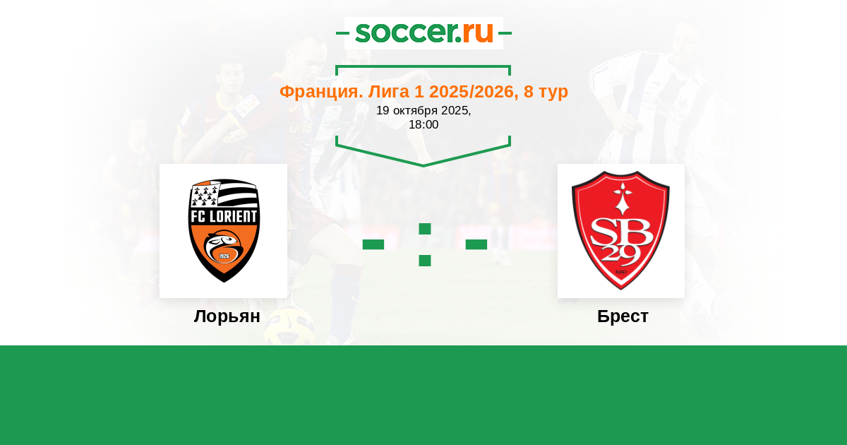 Франция. Лига 1 29.10.2011 Брест Логотип футбольный клуб Брест 3:1 Логотип футбольный клуб Лорьян Лорьян