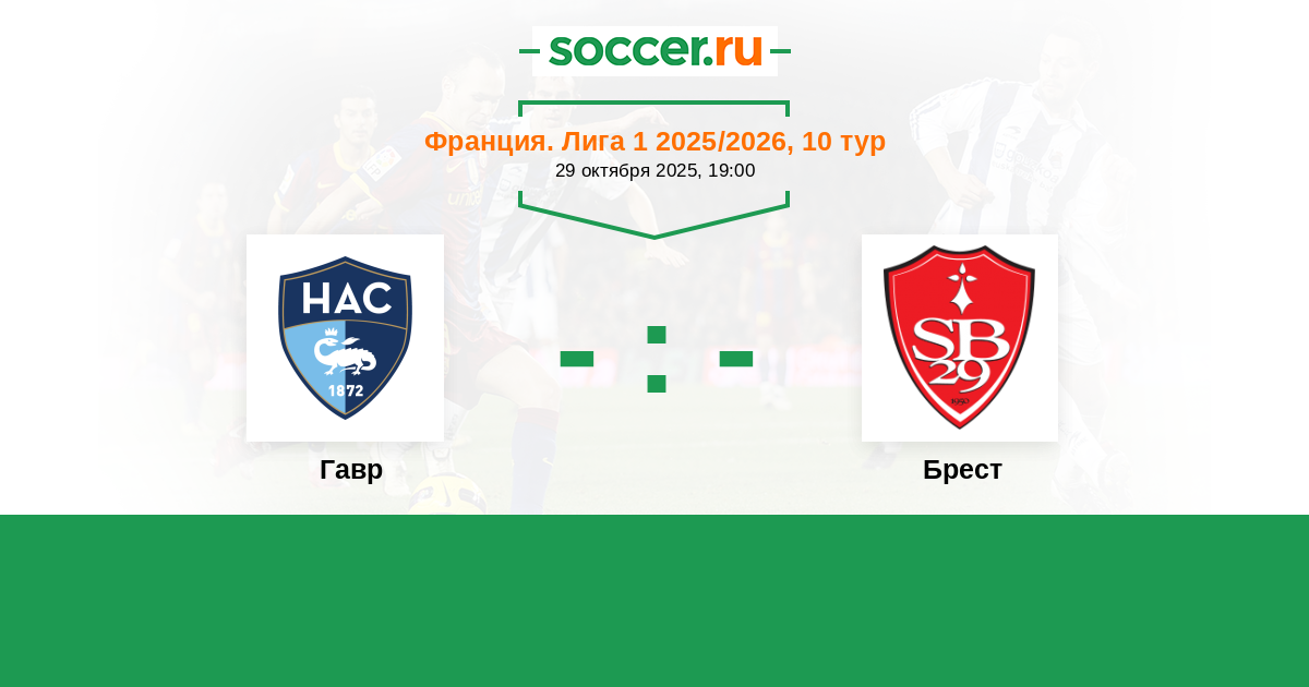 Франция. Лига 1 06.10.2024 Брест Логотип футбольный клуб Брест 2:0 Логотип футбольный клуб Гавр Гавр