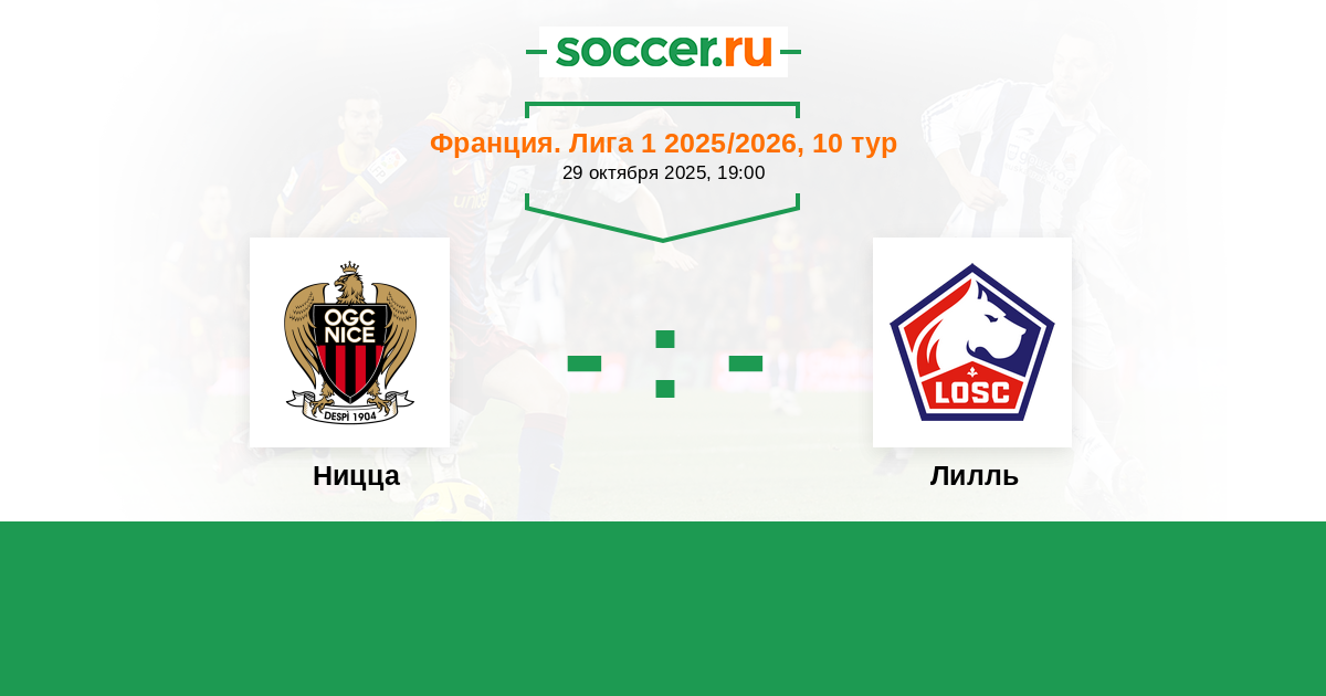 Франция. Лига 1 28.09.2019 Ницца Логотип футбольный клуб Ницца 1:1 Логотип футбольный клуб Лилль Лилль