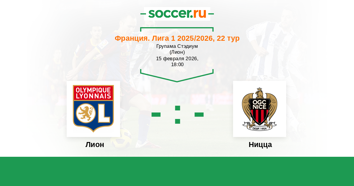 Франция. Лига 1 12.02.2022 Лион Логотип футбольный клуб Лион 2:0 Логотип футбольный клуб Ницца Ницца
