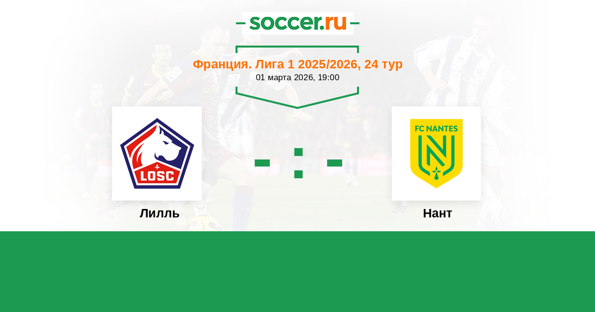 Франция. Лига 1 15.03.2025 Нант Логотип футбольный клуб Нант 1:0 Логотип футбольный клуб Лилль Лилль