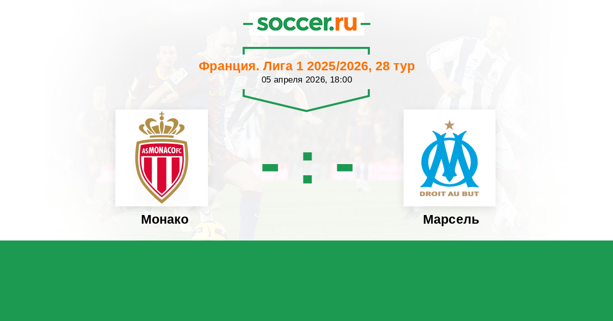 Франция. Лига 1 12.04.2025 Монако Логотип футбольный клуб Монако 3:0 Логотип футбольный клуб Марсель Марсель