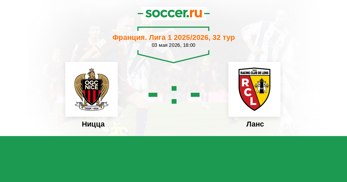 Франция. Лига 1 17.04.2010 Ницца Логотип футбольный клуб Ницца 0:0 Логотип футбольный клуб Ланс Ланс