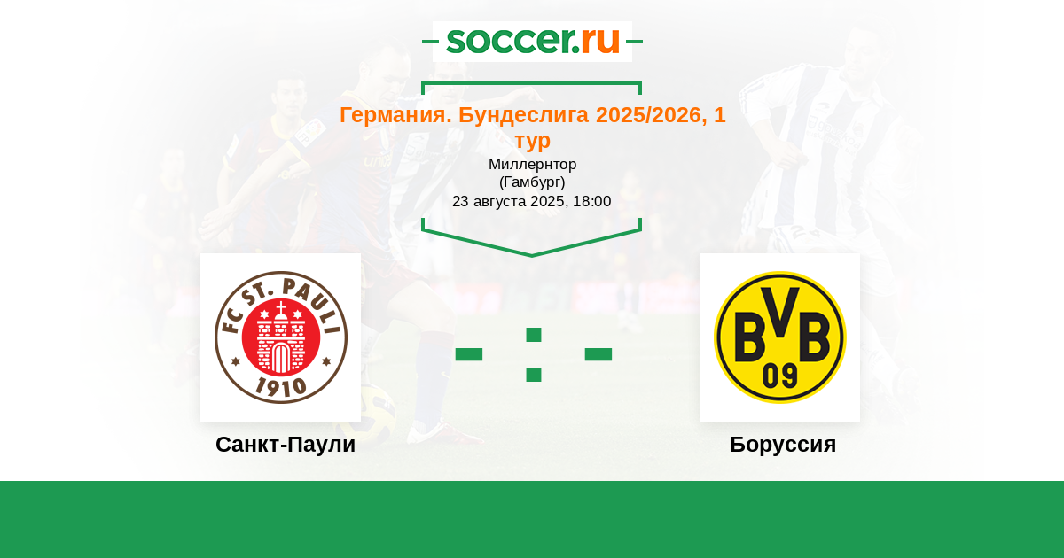 Германия. Бундеслига 18.10.2024 Боруссия Логотип футбольный клуб Боруссия (Дортмунд) 2:1 Логотип футбольный клуб Санкт-Паули (Гамбург) Санкт-Паули