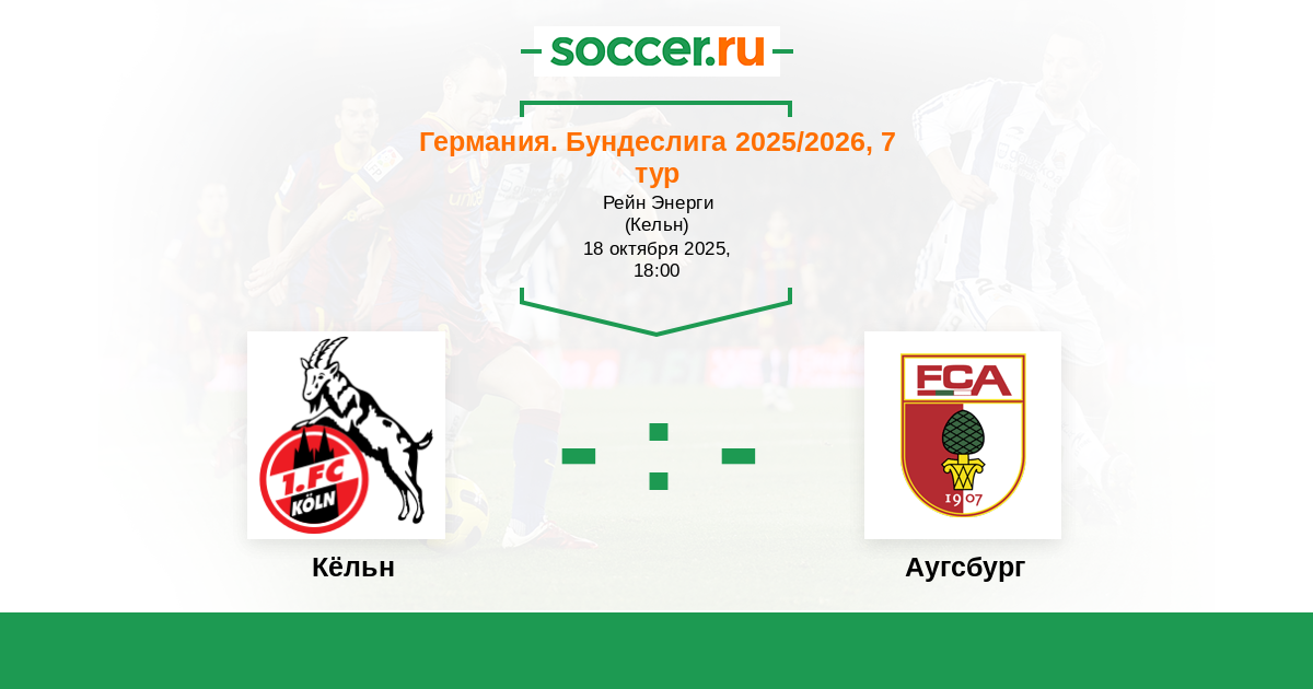 Германия. Бундеслига 09.09.2017 Аугсбург Логотип футбольный клуб Аугсбург 3:0 Логотип футбольный клуб Кёльн Кёльн
