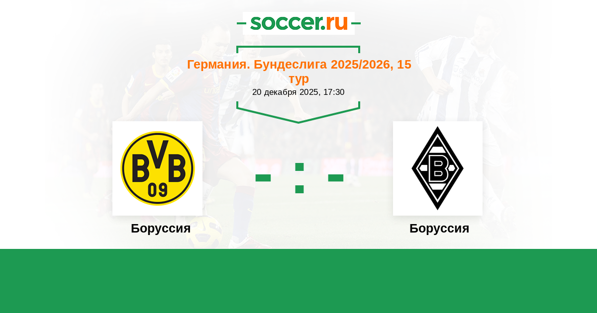 Германия. Бундеслига 07.12.2024 Боруссия Логотип футбольный клуб Боруссия (Менхенгладбах) 1:1 Логотип футбольный клуб Боруссия (Дортмунд) Боруссия