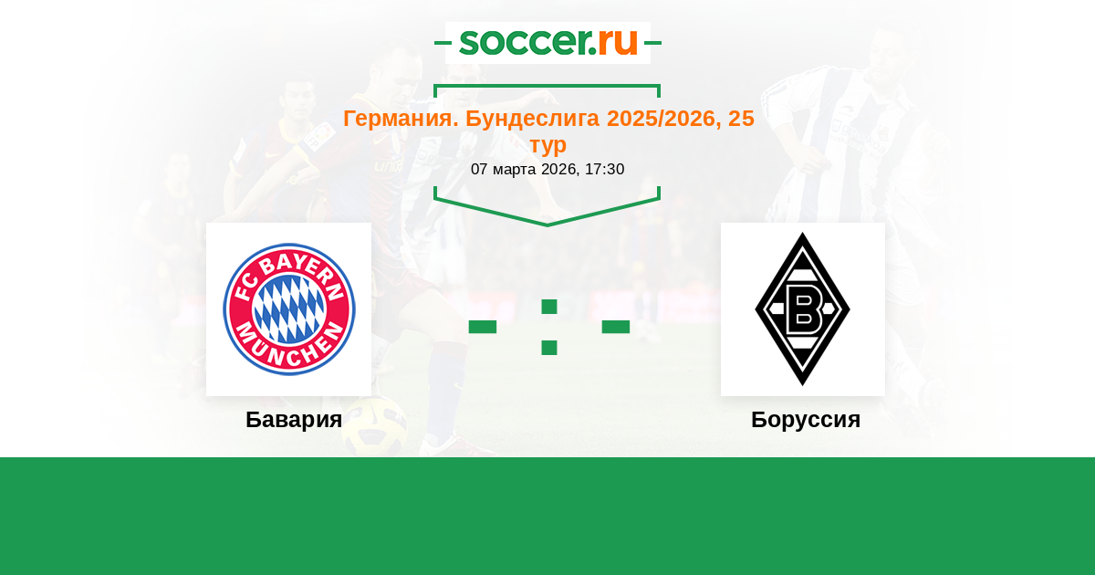 Германия. Бундеслига 25.10.2025 Боруссия Логотип футбольный клуб Боруссия (Менхенгладбах) 0:3 Логотип футбольный клуб Бавария (Мюнхен) Бавария