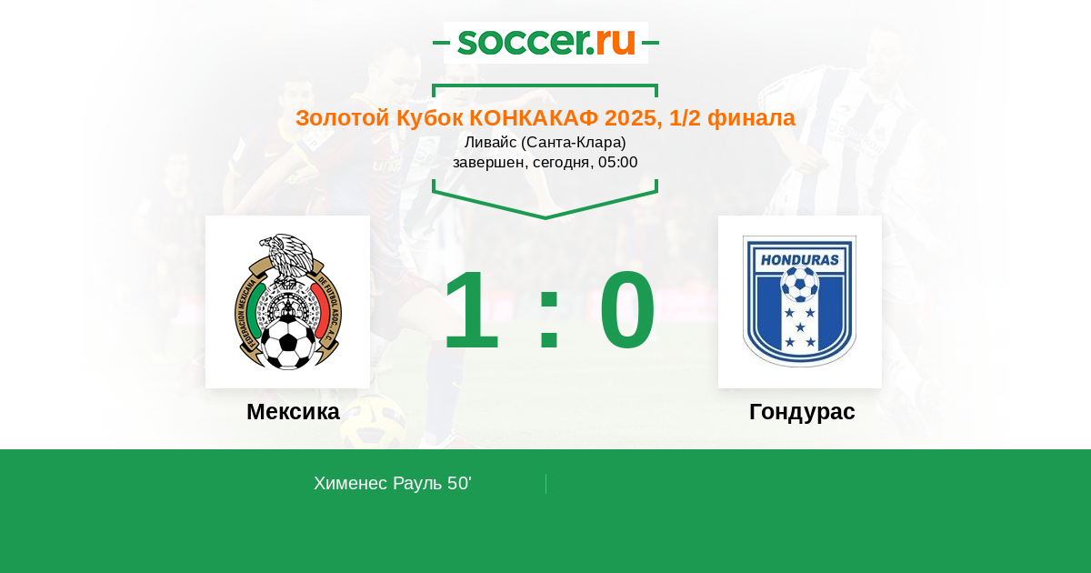 Золотой кубок КОНКАКАФ 25.07.2021 Мексика Логотип Мексика 3:0 Логотип Гондурас Гондурас