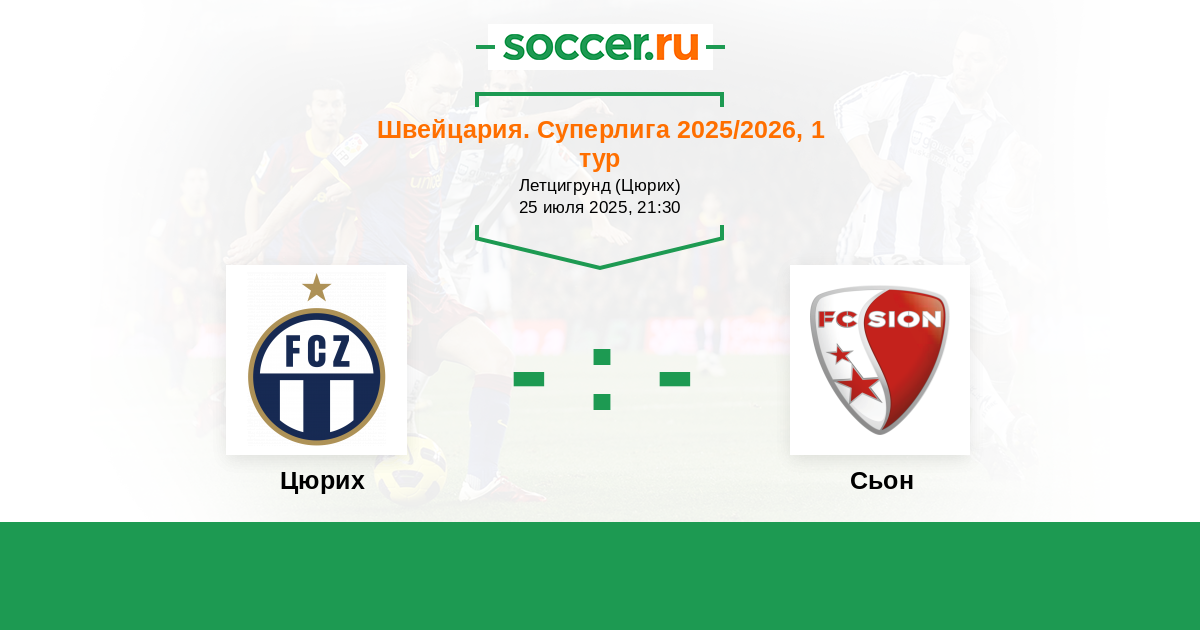 Швейцария. Суперлига 31.07.2010 Цюрих Логотип футбольный клуб Цюрих 1:1 Логотип футбольный клуб Сьон Сьон