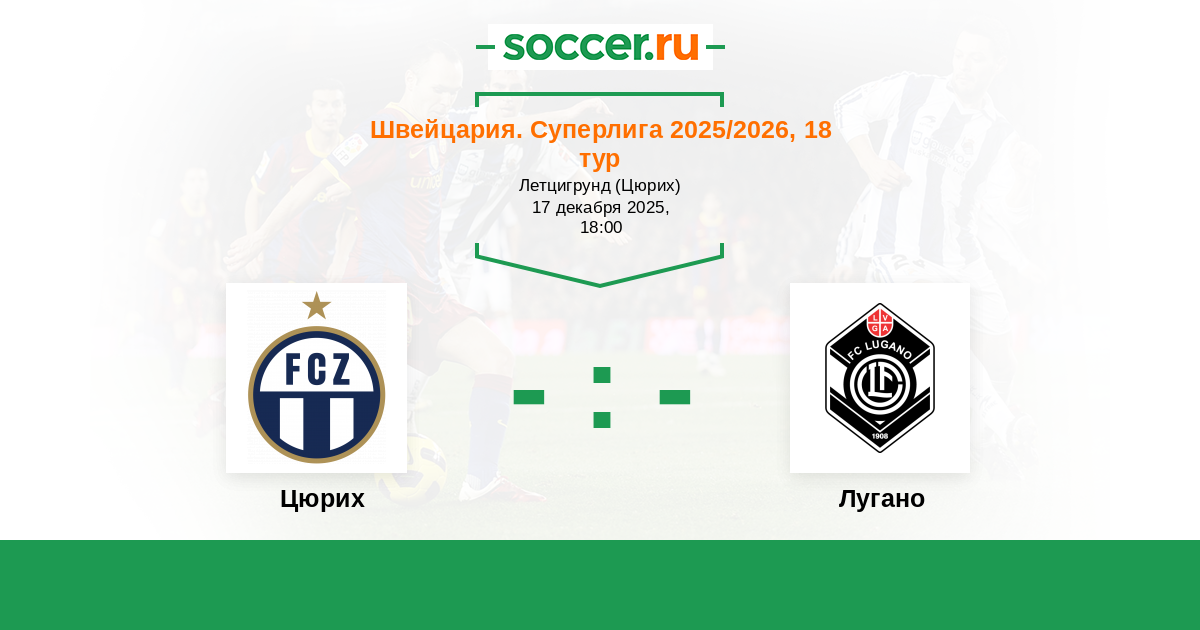 Швейцария. Суперлига 16.12.2018 Цюрих Логотип футбольный клуб Цюрих 0:0 Логотип футбольный клуб Лугано Лугано