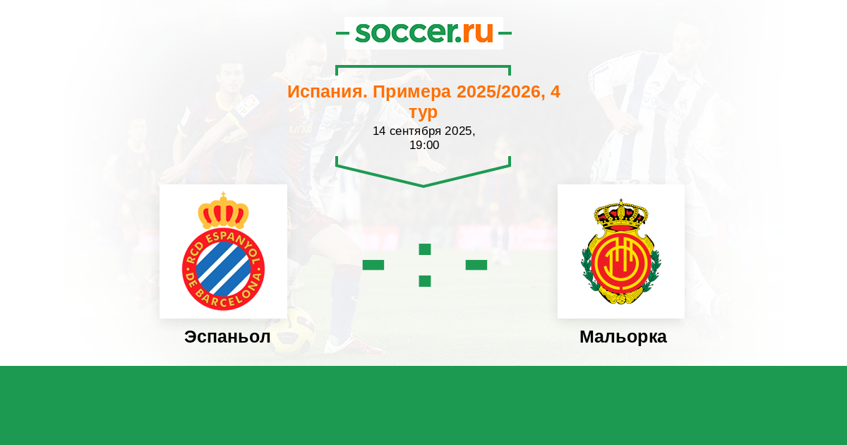 Испания. Сегунда 20.09.2020 Эспаньол Логотип футбольный клуб Эспаньол (Барселона) 0:0 Логотип футбольный клуб Мальорка (Пальма-де-Мальорка) Мальорка
