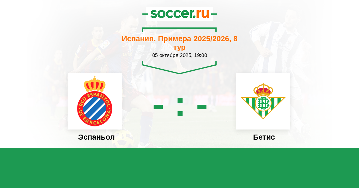 Испания. Примера 29.09.2024 Бетис Логотип футбольный клуб Бетис (Севилья) 1:0 Логотип футбольный клуб Эспаньол (Барселона) Эспаньол