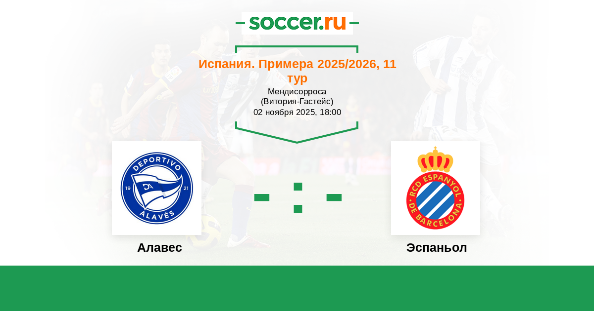Испания. Примера 14.09.2024 Эспаньол Логотип футбольный клуб Эспаньол (Барселона) 3:2 Логотип футбольный клуб Алавес (Витория-Гастейс) Алавес