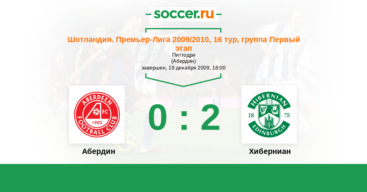 Шотландия. Премьер-Лига 31.10.2009 Хиберниан Логотип футбольный клуб Хиберниан (Эдинбург) 2:0 Логотип футбольный клуб Абердин Абердин