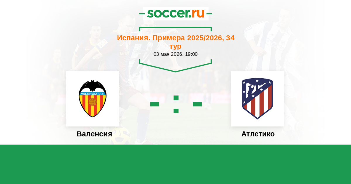 Испания. Примера 09.09.2017 Валенсия Логотип футбольный клуб Валенсия 0:0 Логотип футбольный клуб Атлетико (Мадрид) Атлетико