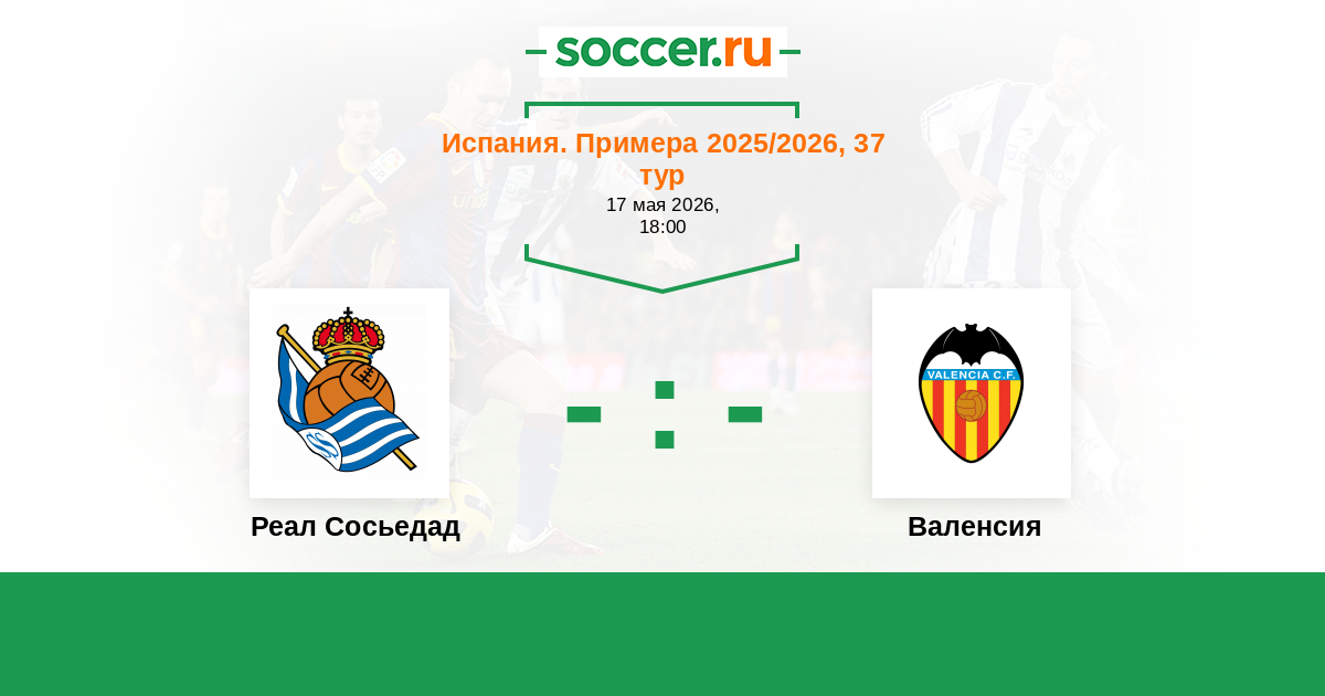 Испания. Примера 10.02.2019 Валенсия Логотип футбольный клуб Валенсия 0:0 Логотип футбольный клуб Реал Сосьедад (Сан-Себастьян) Реал Сосьедад