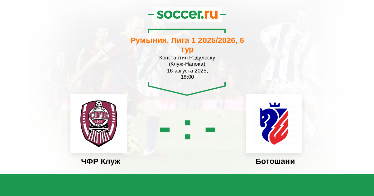 Румыния. Лига 1 26.08.2023 ЧФР Клуж Логотип футбольный клуб ЧФР Клуж (Бухарест) 3:1 Логотип футбольный клуб Ботошани Ботошани