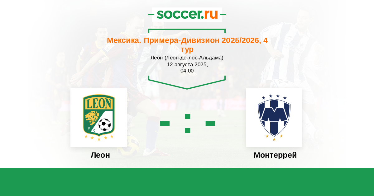 Мексика. Примера-Дивизион 21.04.2025 Леон Логотип футбольный клуб Леон 0:2 Логотип футбольный клуб Монтеррей Монтеррей