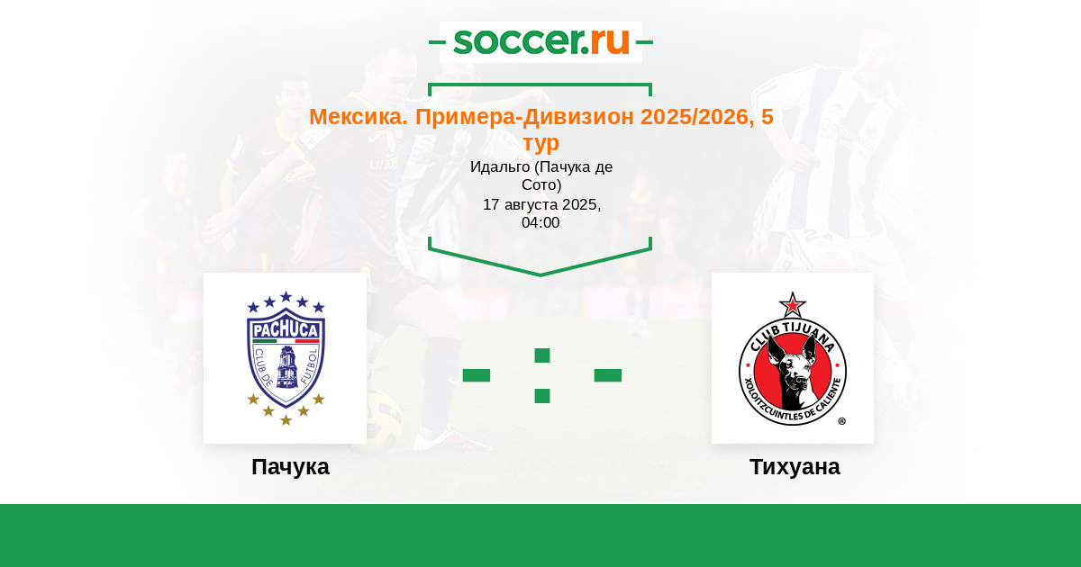 Мексика. Примера-Дивизион 12.08.2012 Пачука Логотип футбольный клуб Пачука 2:2 Логотип футбольный клуб Тихуана Тихуана