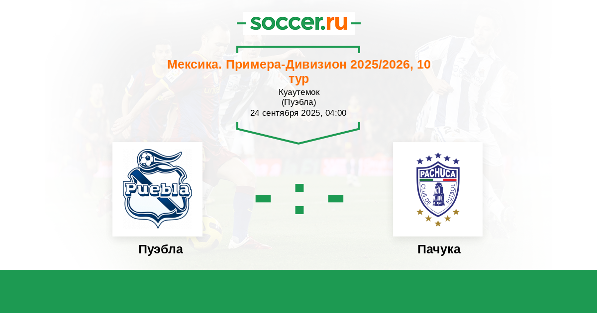 Мексика. Примера-Дивизион 21.09.2024 Пуэбла Логотип футбольный клуб Пуэбла (Пуэбла-де-Сарагоса) 2:3 Логотип футбольный клуб Пачука Пачука