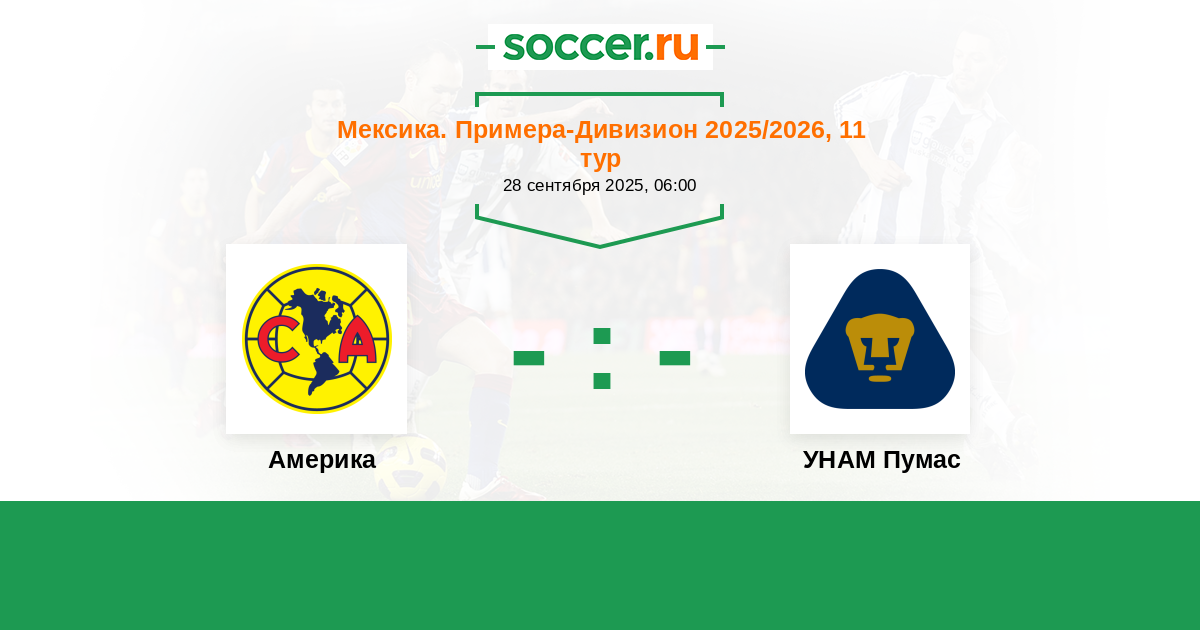 Мексика. Примера-Дивизион 04.10.2021 Америка Логотип футбольный клуб Америка (Мехико) 2:0 Логотип футбольный клуб УНАМ Пумас (Мехико) УНАМ Пумас