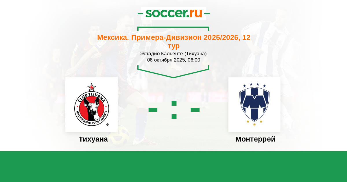 Мексика. Примера-Дивизион 04.10.2012 Монтеррей Логотип футбольный клуб Монтеррей 1:1 Логотип футбольный клуб Тихуана Тихуана