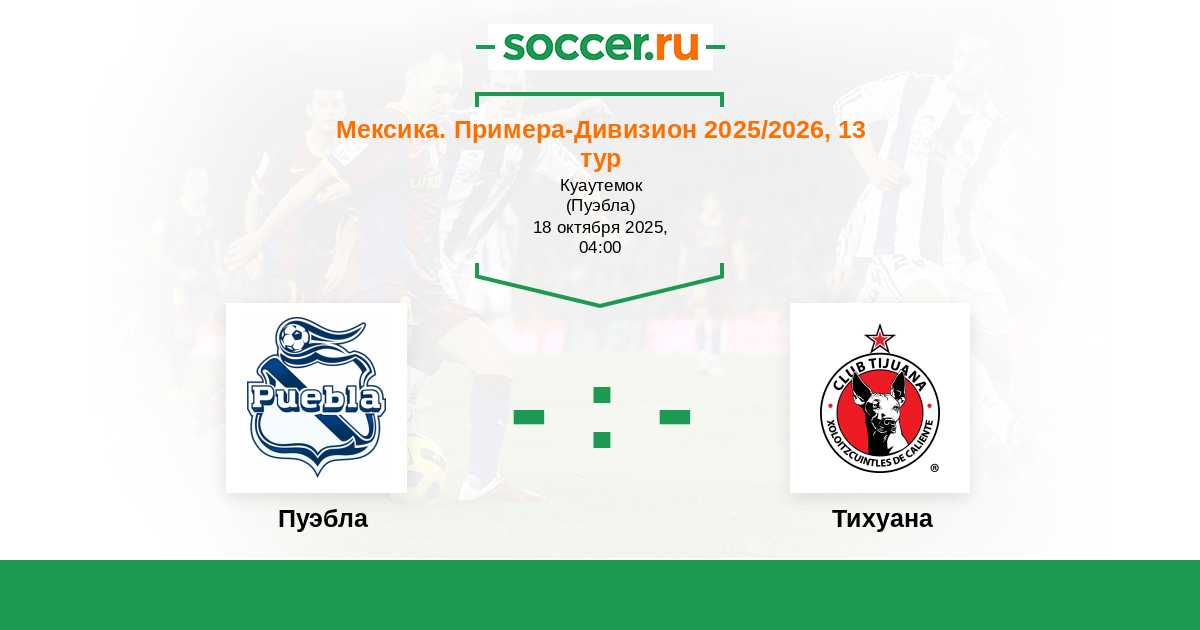 Мексика. Примера-Дивизион 29.09.2013 Пуэбла Логотип футбольный клуб Пуэбла (Пуэбла-де-Сарагоса) 2:0 Логотип футбольный клуб Тихуана Тихуана