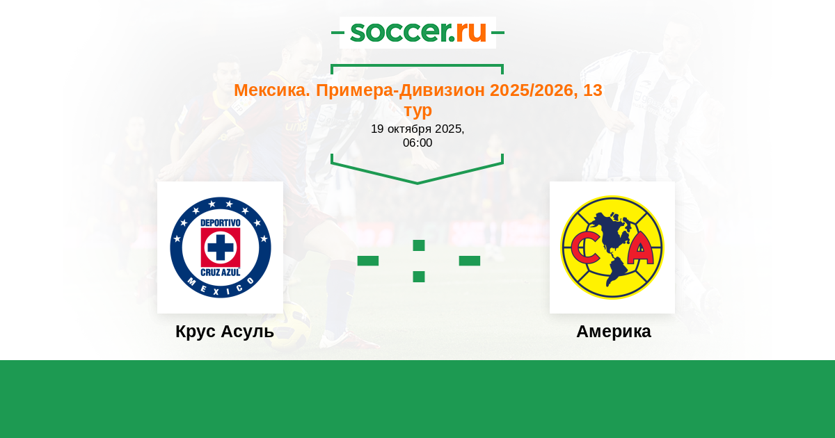Мексика. Примера-Дивизион 19.10.2013 Крус Асуль Логотип футбольный клуб Крус Асуль (Мехико) 1:1 Логотип футбольный клуб Америка (Мехико) Америка