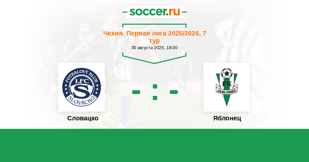 Чехия. Первая Лига 29.08.2020 Словацко Логотип футбольный клуб Словацко (Угерске-Градиште) 1:1 Логотип футбольный клуб Яблонец (Яблонец-над-Нисоу) Яблонец