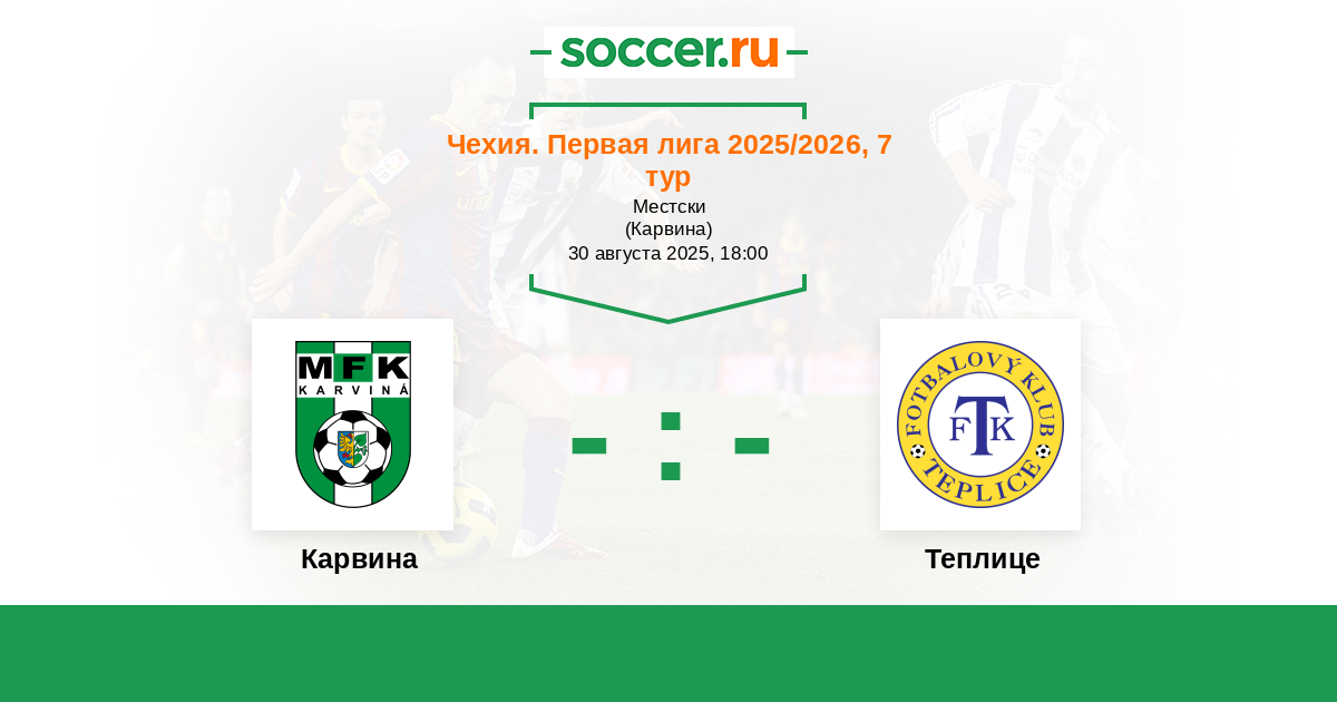 Чехия. Первая Лига 16.09.2018 Теплице Логотип футбольный клуб Теплице 2:1 Логотип футбольный клуб Карвина Карвина