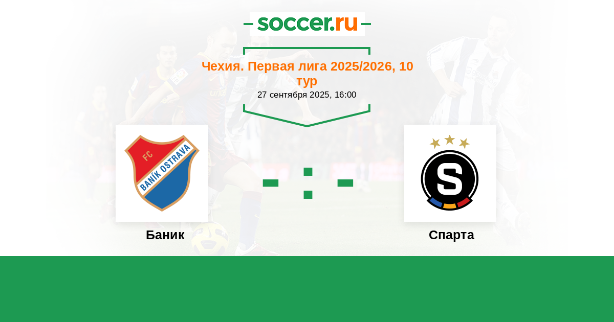 Чехия. Первая Лига 02.05.2010 Баник Логотип футбольный клуб Баник (Острава) 1:1 Логотип футбольный клуб Спарта (Прага) Спарта