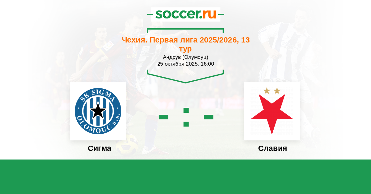 Чехия. Первая Лига 09.09.2017 Сигма Логотип футбольный клуб Сигма (Оломоуц) 1:1 Логотип футбольный клуб Славия (Прага) Славия