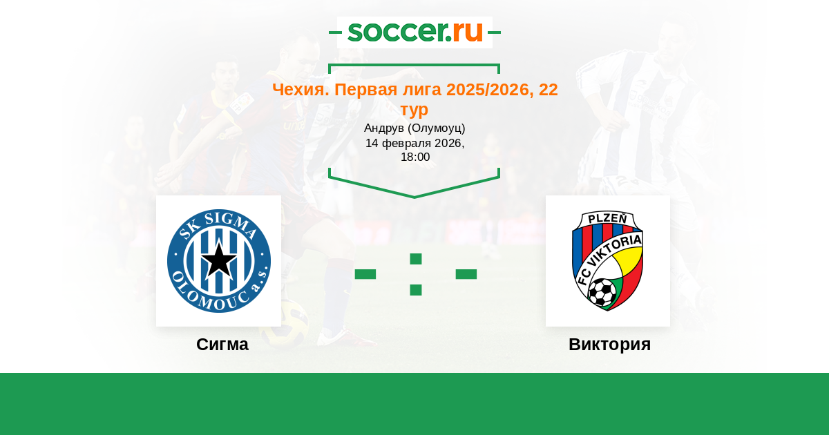 Чехия. Первая Лига 18.02.2018 Сигма Логотип футбольный клуб Сигма (Оломоуц) 0:0 Логотип футбольный клуб Виктория (Пльзень) Виктория