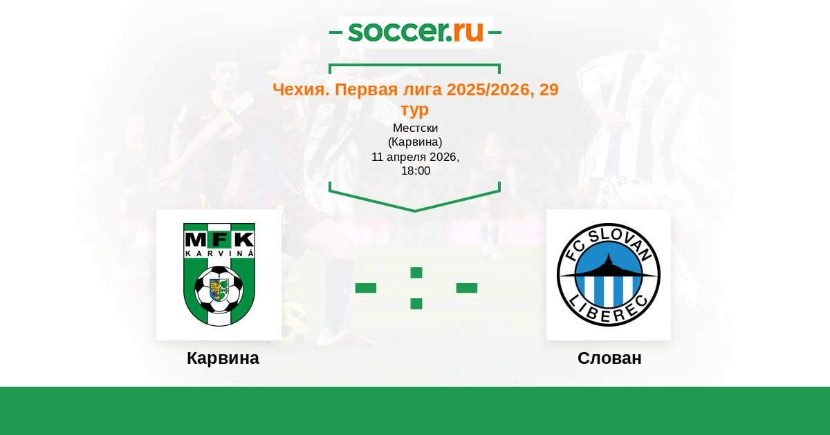 Чехия. Первая Лига 09.11.2025 Слован Логотип футбольный клуб Слован (Либерец) 6:0 Логотип футбольный клуб Карвина Карвина
