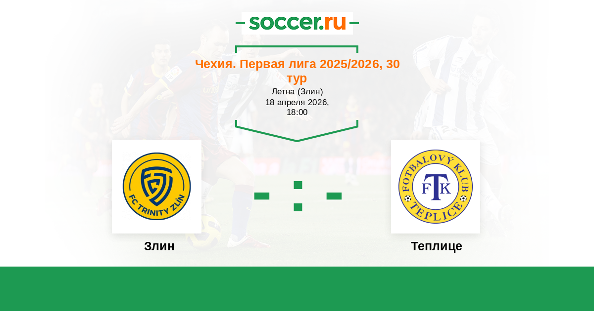Чехия. Первая Лига 18.08.2018 Злин Логотип футбольный клуб Злин 1:0 Логотип футбольный клуб Теплице Теплице